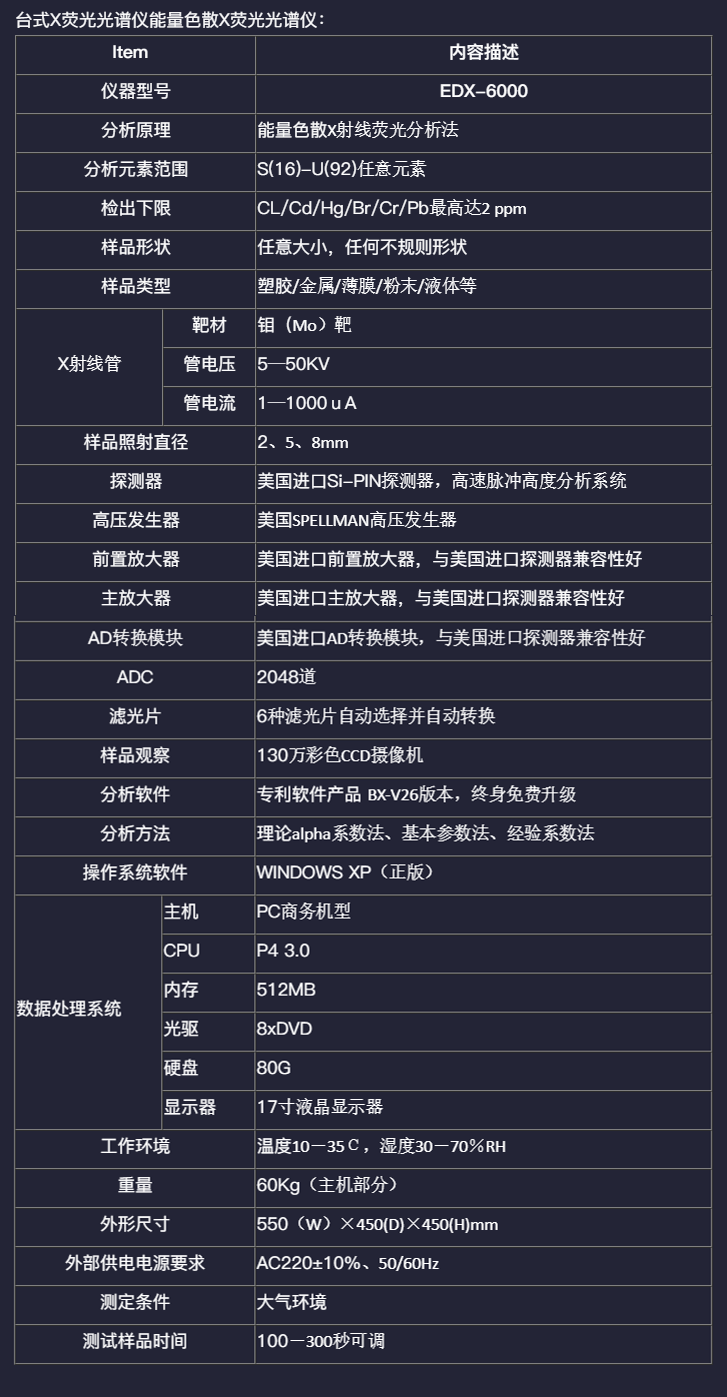 臺式X熒光光譜儀非真空能量色散X熒光光譜儀: